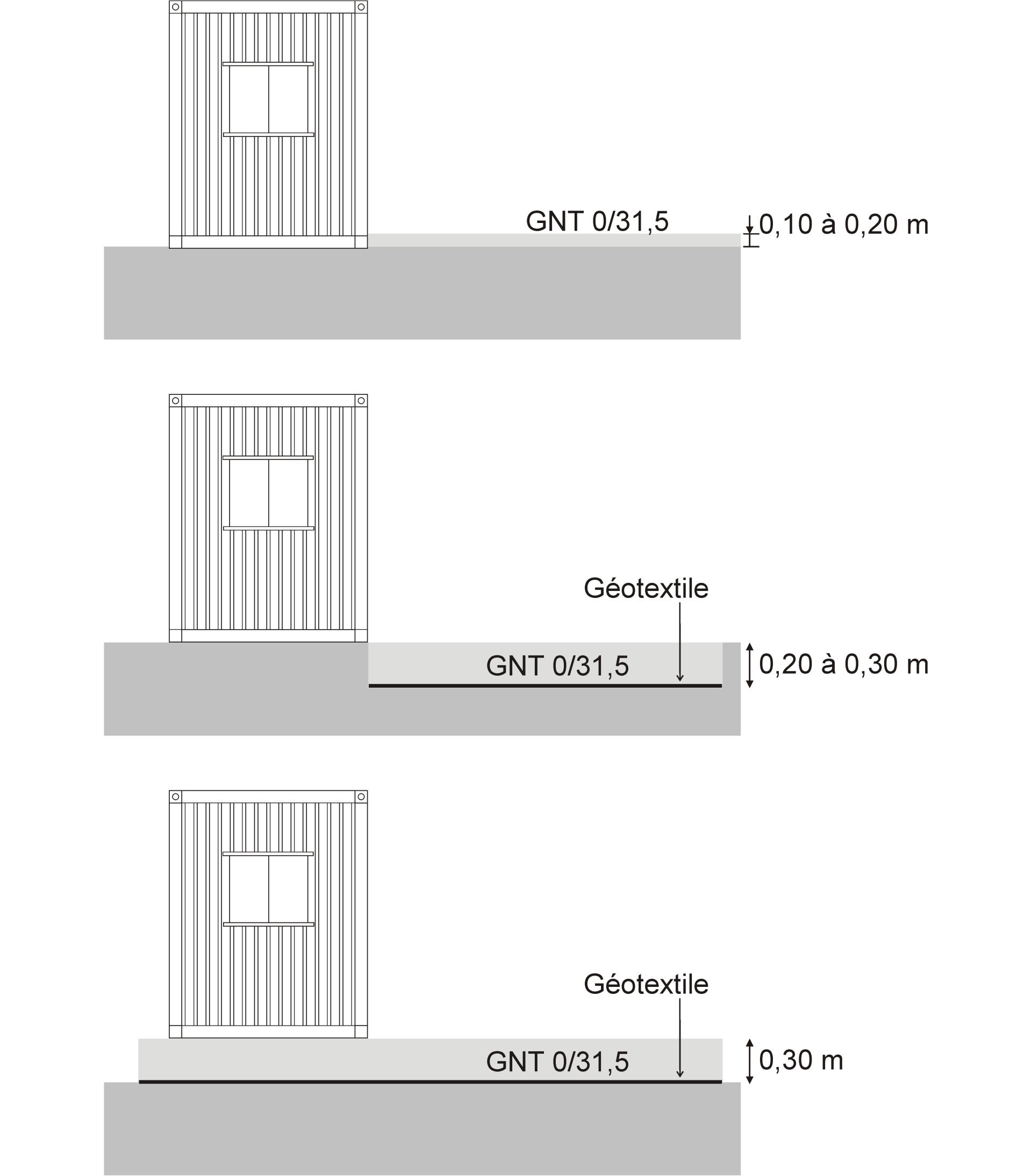 - Remblaiement par matériaux d’apport (GNT, GR…) avec ou sans compactage