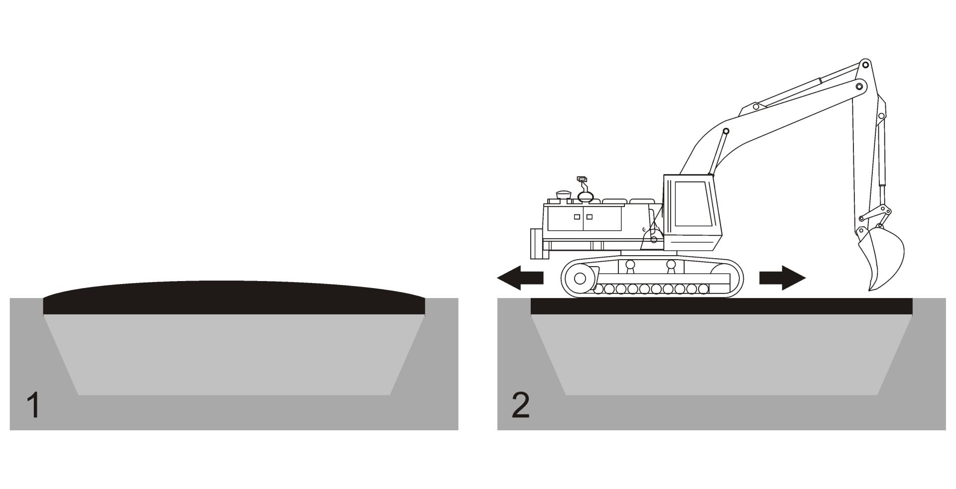 2- Nivellement par tassement grâce au passage répété d’un engin de terrassement.