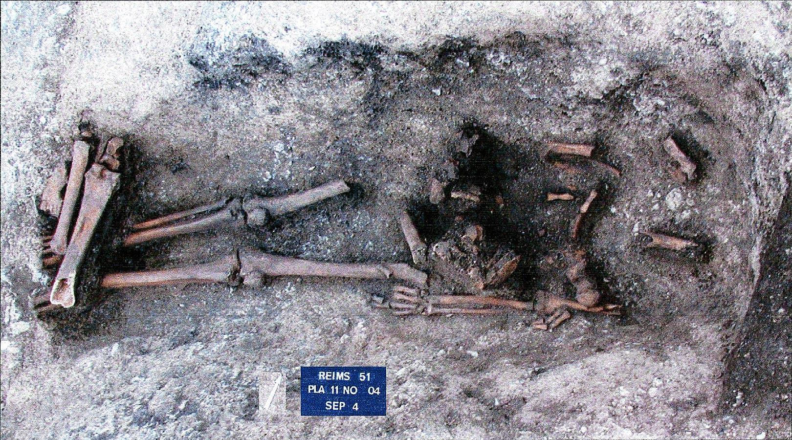 A Reims, Marne, la fouille se trouve dans un secteur réputé dès la fin du XIXe siècle pour recouvrir une nécropole antique ; elle porte sur une zone de 200 m2 au sein d'un ensemble funéraire vraisemblablement beaucoup plus vaste qui se situe à environ 300 m de l'enceinte du Haut-Empire.