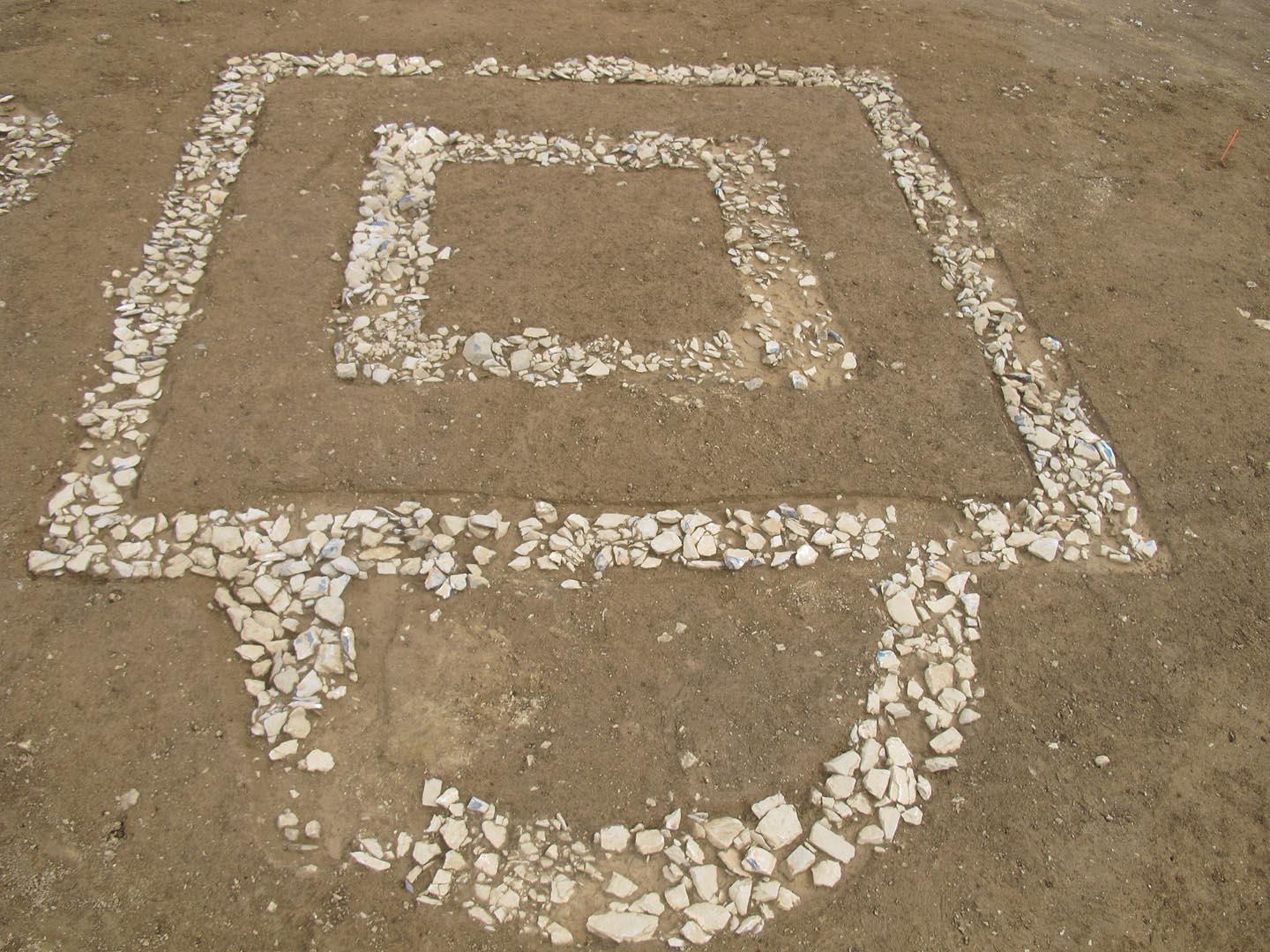 Entre la période d'abandon de la voie et les années 70, à l'est du site, apparaît un enclos fossoyé de forme carrée (54 m de côté en interne) qui délimite une aire sacrée. La façade orientale de l'enclos est prolongée en direction du sud, hors de l'emprise de fouille. Elle abrite l'entrée de l'enceinte, dans laquelle ont été décelés les vestiges d'un bâtiment, peut-être un temple.