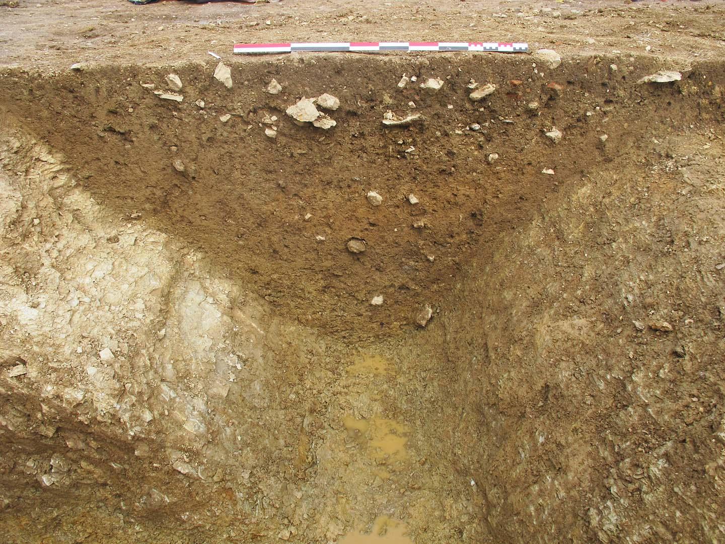 La période antique est d'abord représentée par une voie dont il ne reste que les deux fossés bordiers. Large de 6 m en moyenne, elle devait être en fonction au début du Ier siècle de notre ère, et abandonnée dès les années 20.