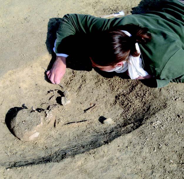 Sépulture romaine d’enfant, en cours de fouille