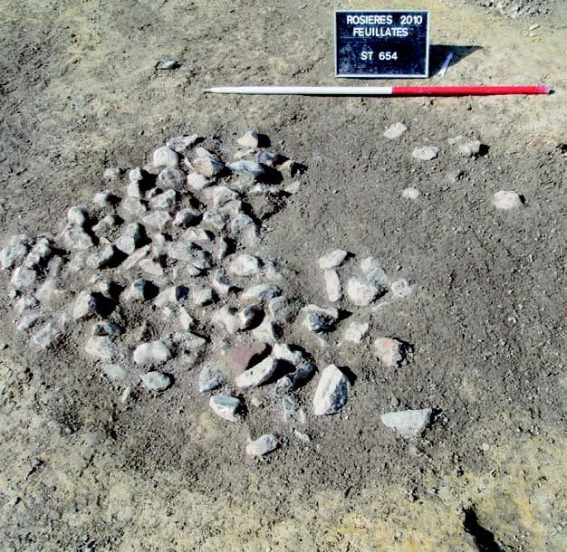 Le secteur fouillé semble correspondre à ces périodes à une zone humide. Des vestiges antérieurs à notre ère, peu nombreux, quelques fosses du Néolithique et de l’âge du Bronze, suggèrent une présence humaine intermittente.