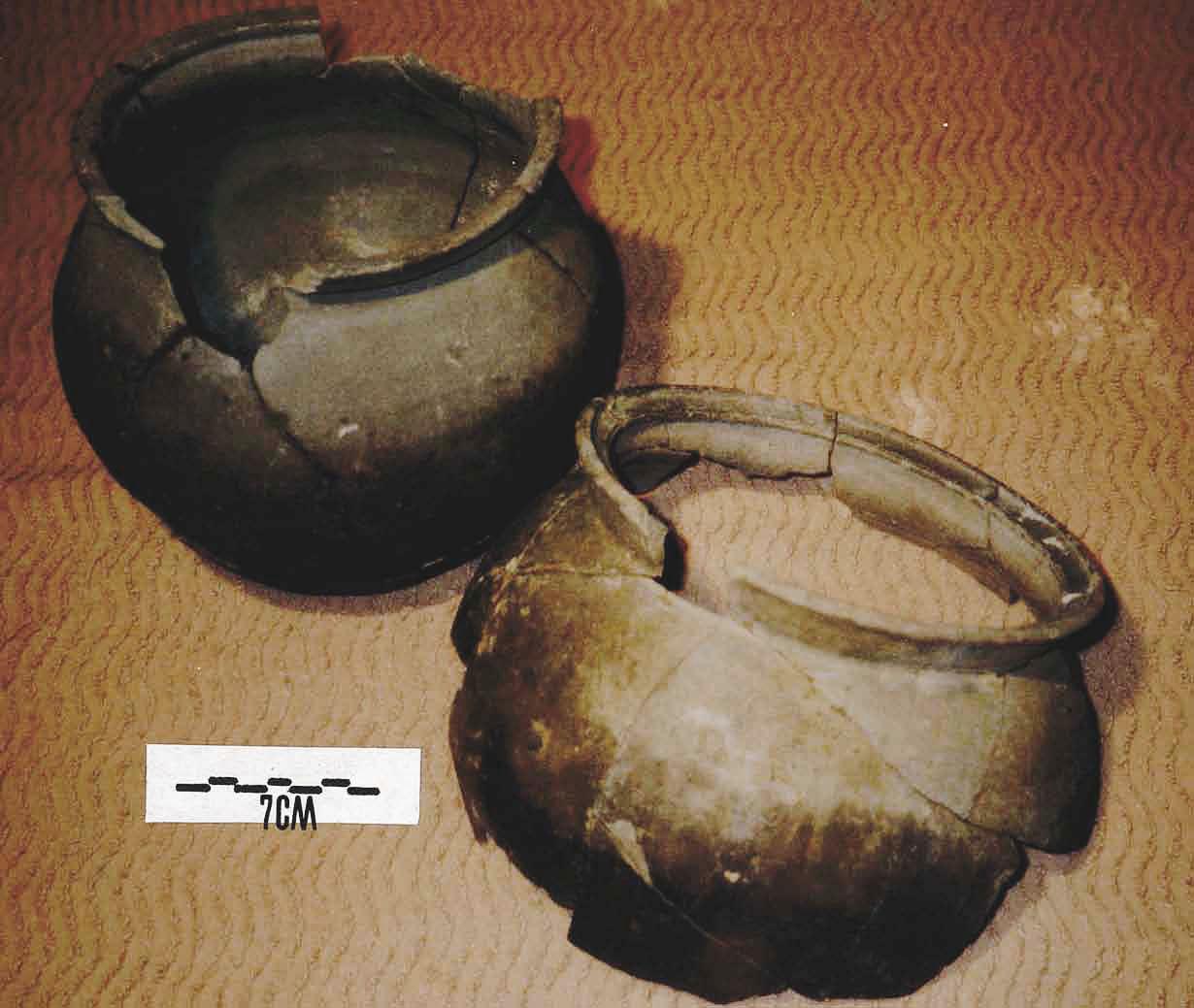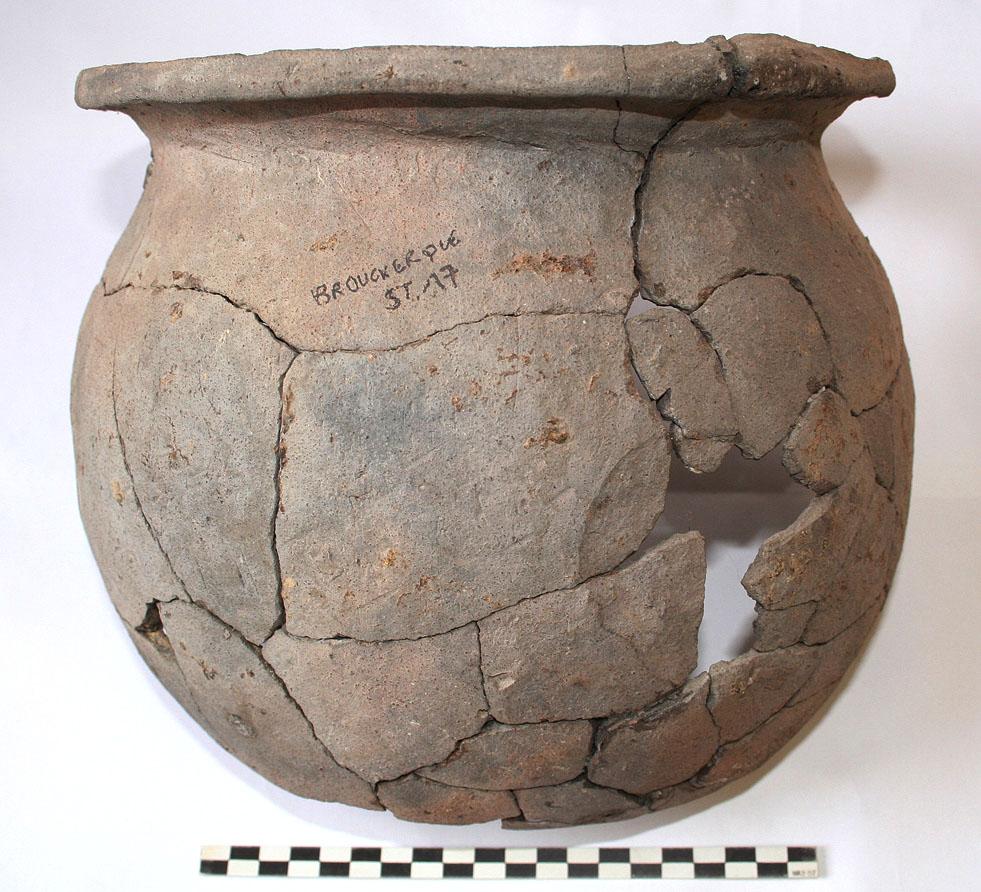 La céramique recueillie dans les fossés comprend des pots en terre sableuse bien tournée avec un fond bombé et un décor au doigt sur le bord ; ce type de récipient, appelé « oule », sert à la fois à la conservation, à la présentation et au réchauffage des aliments. Il est caractéristique de la seconde moitié du XIIe siècle et du début du XIIIe siècle.