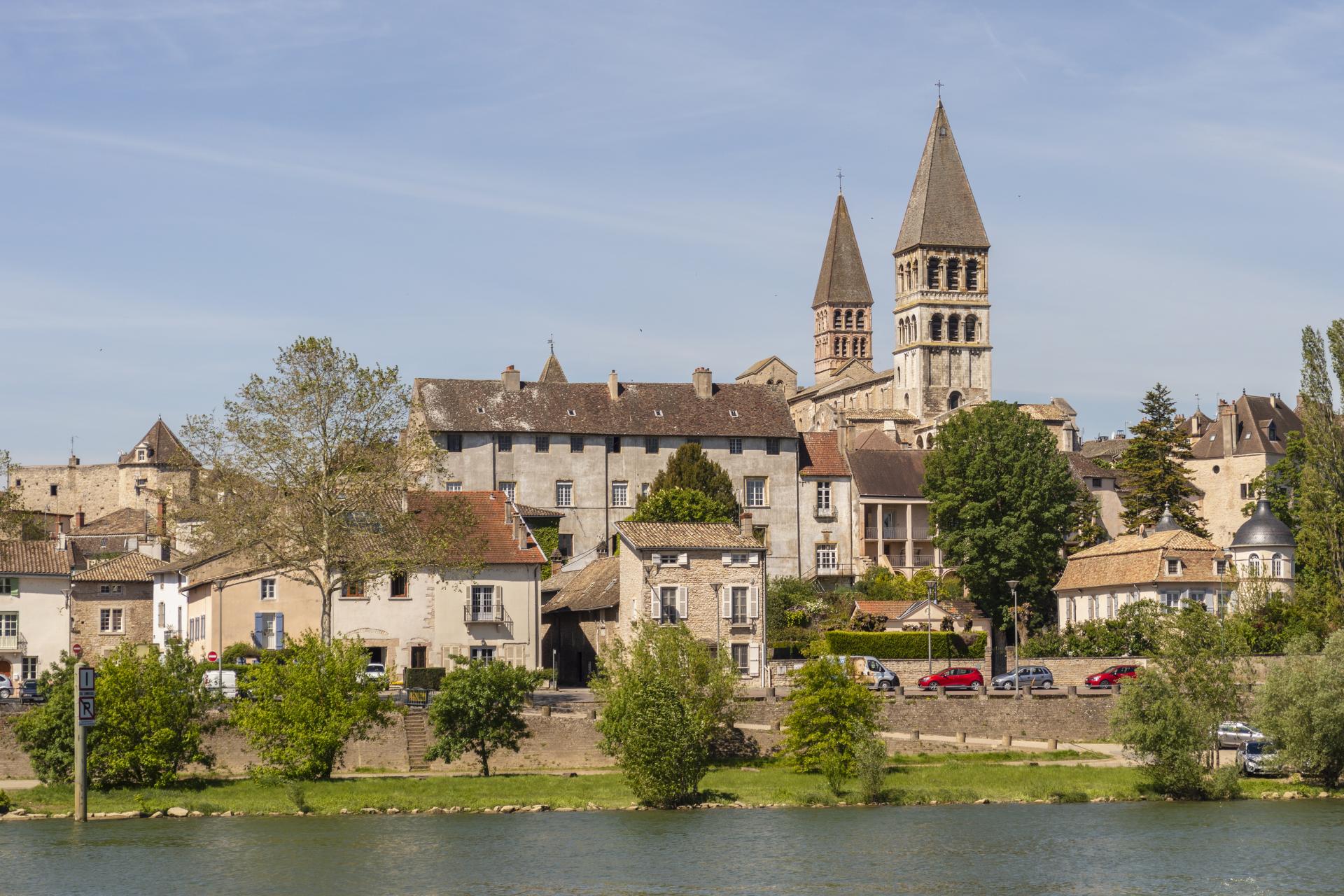 L’abbaye de Tournus et le logis abbatial du XVIe siècle, vus depuis la Saône