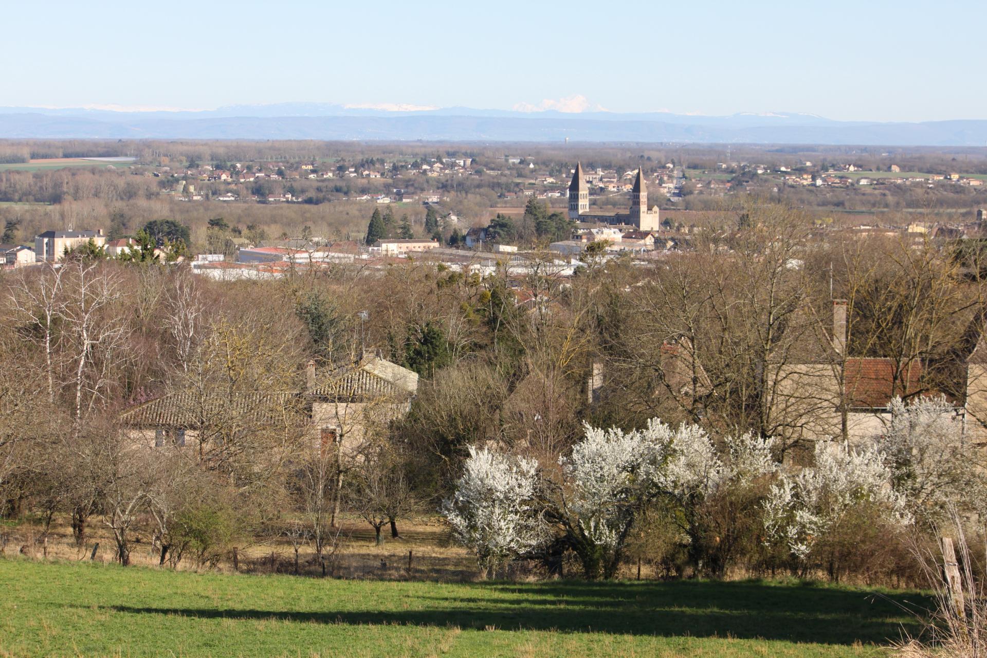 La campagne tournusienne, l’abbaye et le Mont-Blanc, au début du printemps