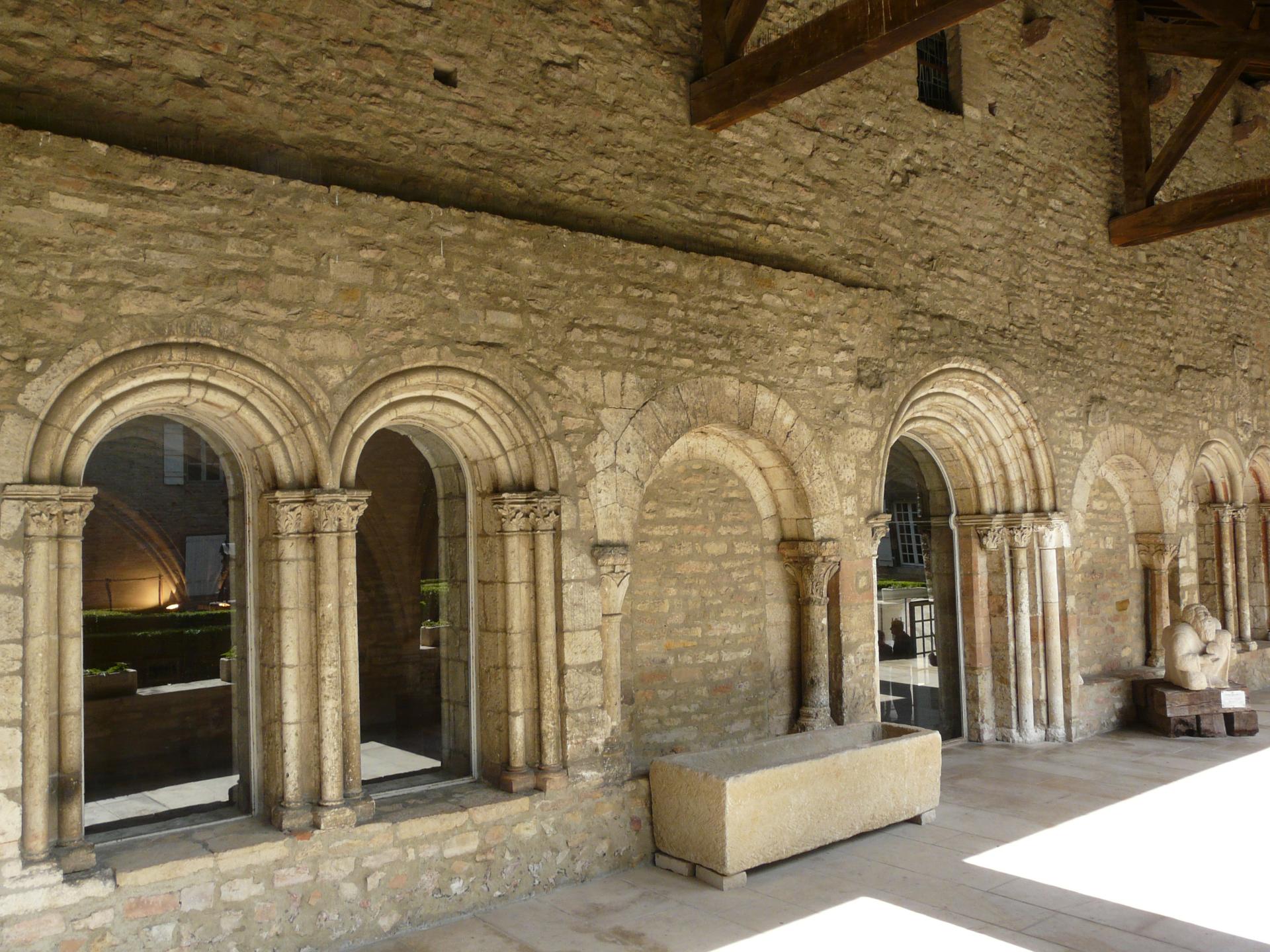 Disons que le cloître était leur centre de vie, mais qu’ils avaient l’occasion d’en sortir. À Tournus, l’espace correspondant a été maintes fois repris depuis le XIe siècle, avec des destructions partielles et des restaurations ; mais il reste très évocateur. On reconnaît à l’est une partie du dortoir collectif à l’étage, en relation directe avec le sanctuaire de l’église, à l’origine. En-dessous est conservée la salle du chapitre, ouverte sur le cloître, où les moines se réunissaient chaque matin. Au sud s’étend toujours le réfectoire où ils prenaient leurs repas en commun. L’aile ouest est bien conservée, à commencer par le petit local du parloir, rarement préservé dans ce genre de site, à la jonction de l’église et du cloître. Il mettait en relation le cloître et les moines avec le monde extérieur. Le reste était occupé par le cellier, qui abritait réserves alimentaires et tonneaux de vin : davantage tourné vers le monde extérieur, il était accessible depuis la cour d’entrée occidentale. Les moines s’en occupaient et s’y rendaient, mais il était sans doute très fréquenté par les domestiques. À son extrémité sud, devant l’entrée du réfectoire et en relation directe avec lui, se dressait la cuisine du XIIe siècle, ouvrant initialement sur trois côtés sur les cours adjacentes. Elle a été rasée au XVIIe, mais une fouille a pu la faire revivre, livrant des données passionnantes sur le quotidien et l’alimentation des occupants des lieux. On est là plutôt dans le domaine des domestiques, mais les moines n’en étaient pas absents.