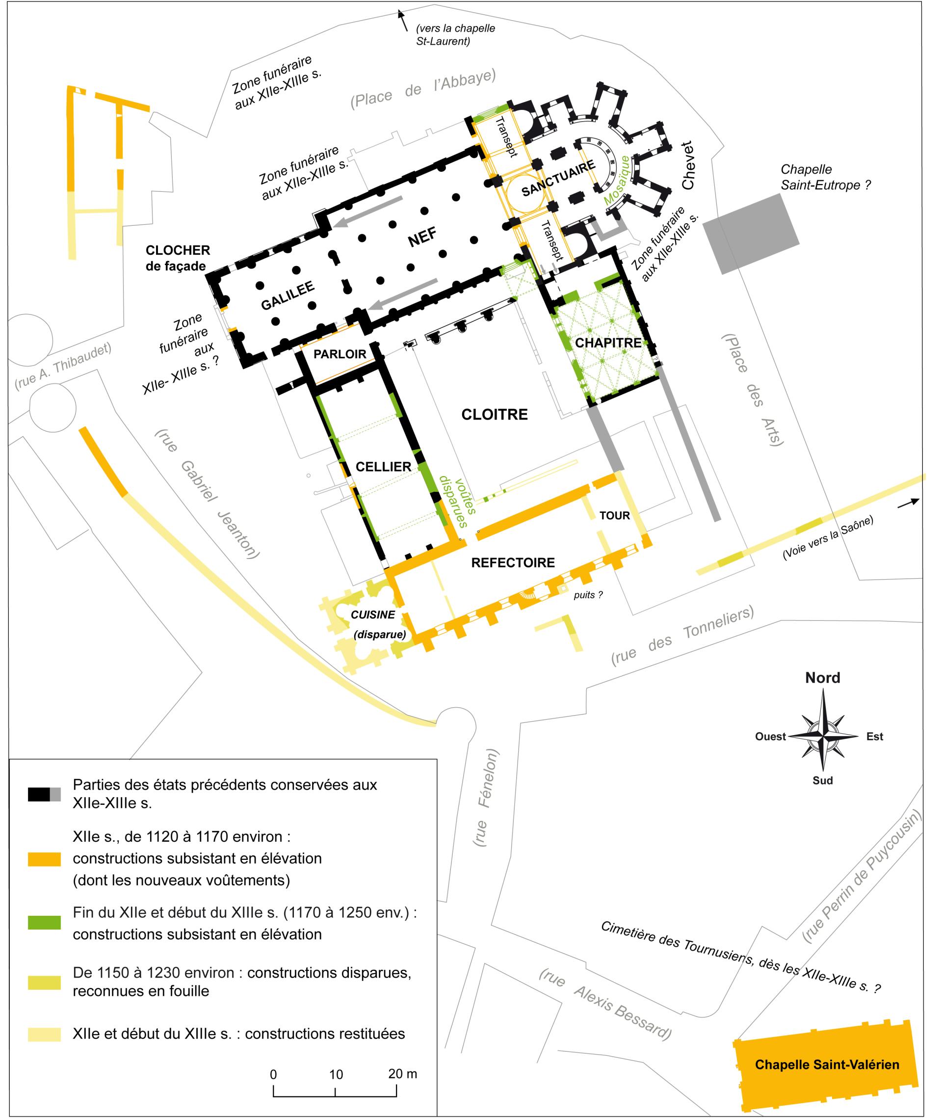 Plan de l’abbaye : vestiges et grandes phases de construction du XIe au milieu du XIIIe siècle