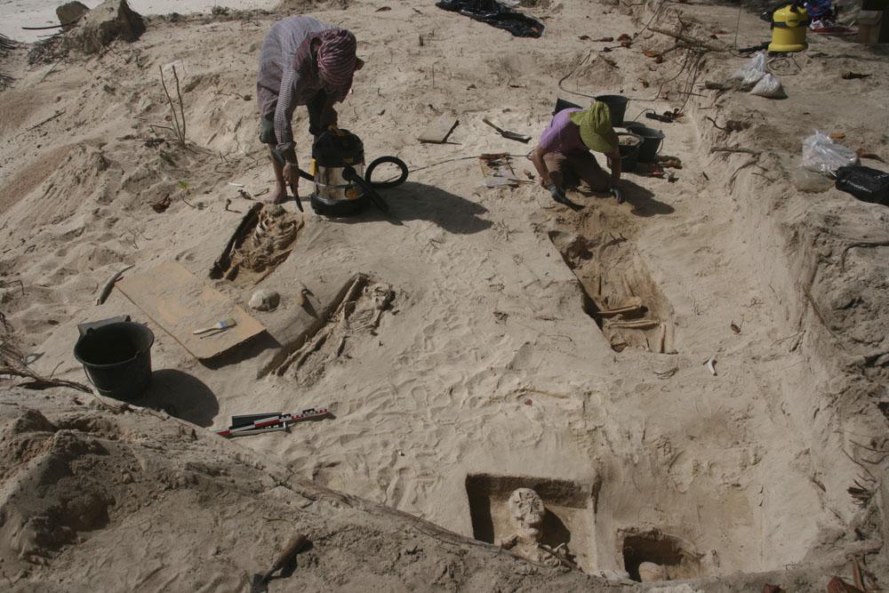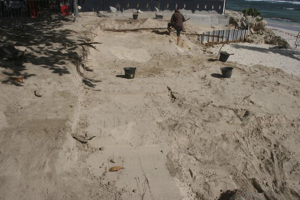 L'érosion marine sur le littoral de Saint-François, côte sud de la Grande-Terre, détruit progressivement un cimetière d'époque coloniale sur la plage des Raisins clairs. L'Inrap intervient du 13 janvier au 12 février 2014 sur une bande de 3 m de large, sur 60 m de long, directement en arrière du front d'érosion.