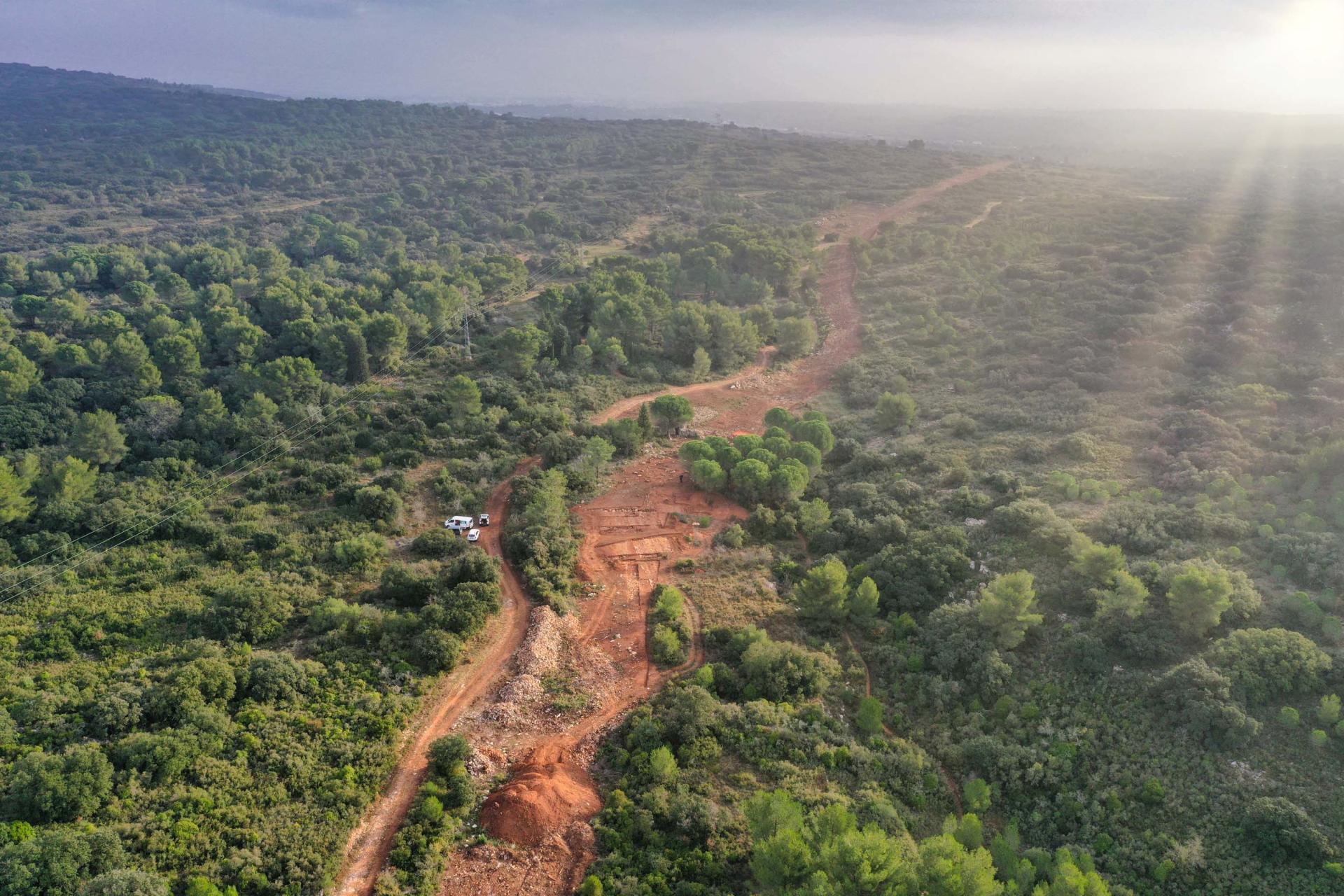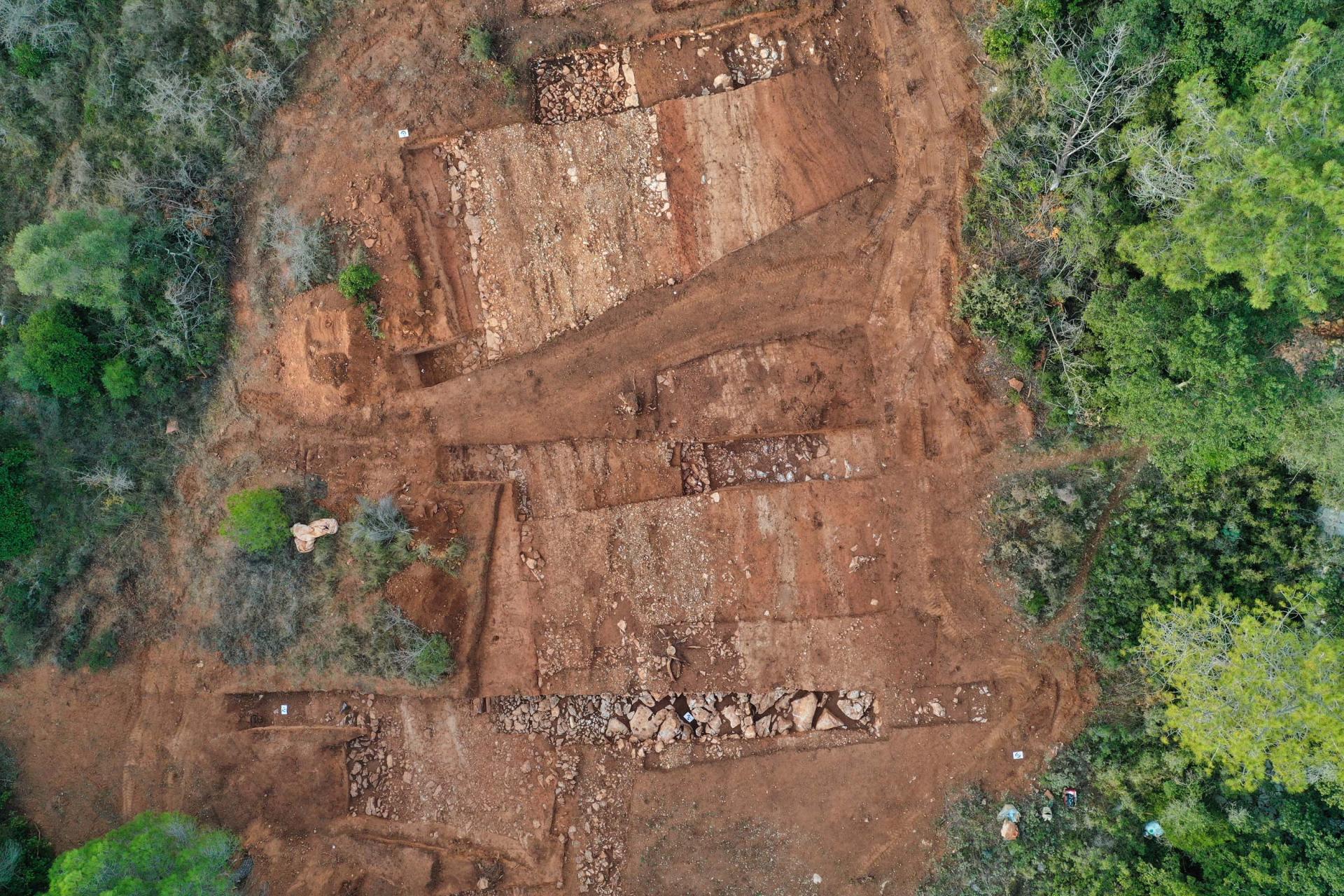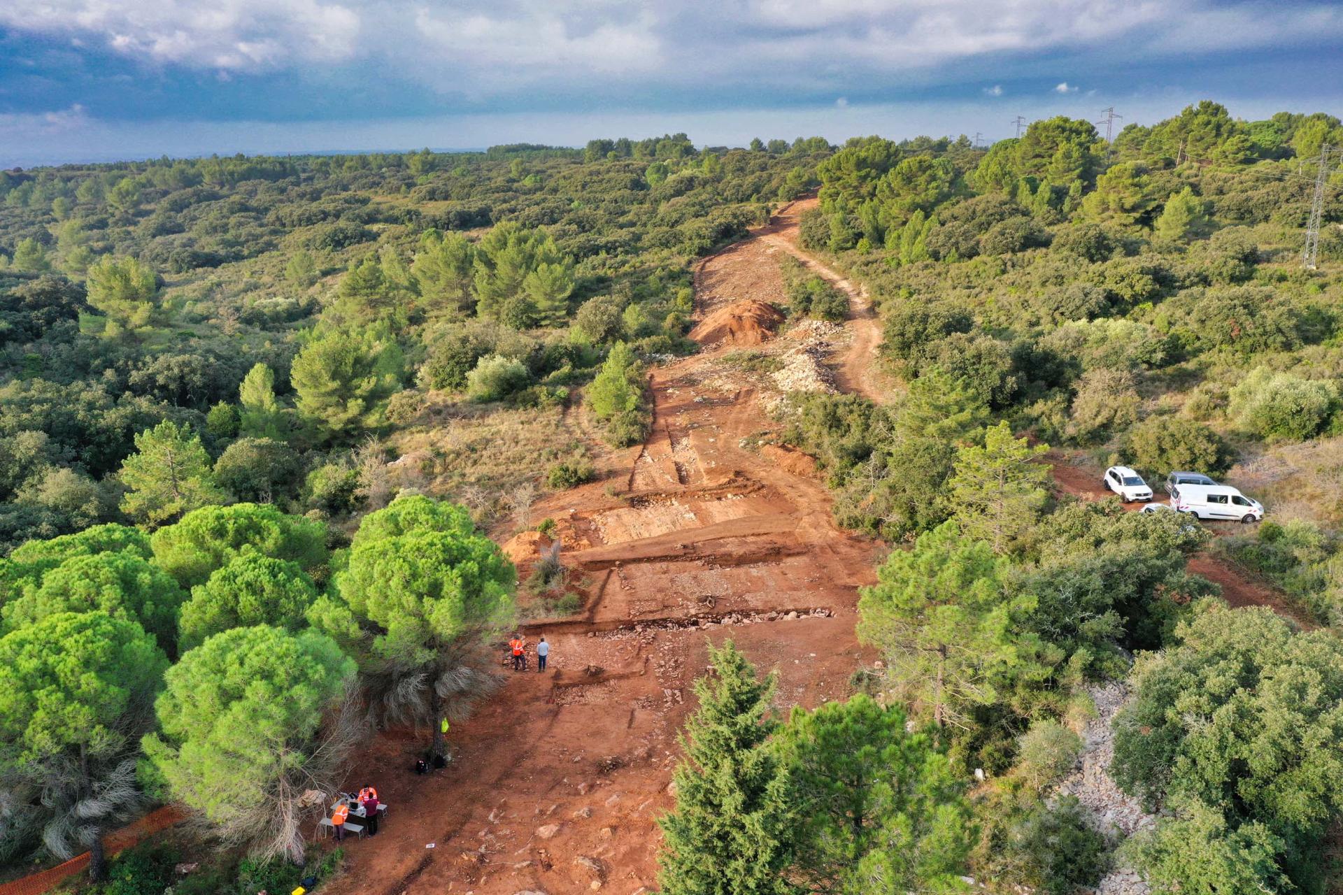 Photographie zénithale des recherches archéologiques menées sur la Voie Domitienne.