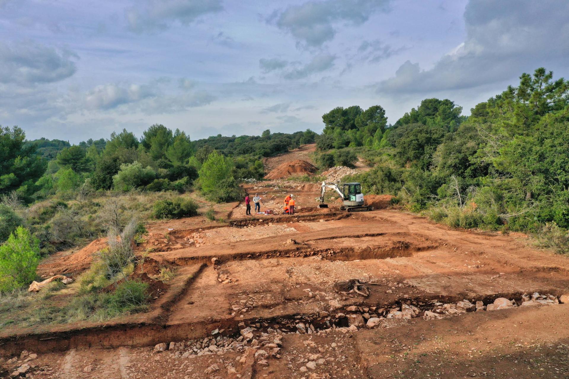 Une équipe de l’Inrap vient de mettre au jour un nouveau tronçon de la plus ancienne voie romaine connue en Gaule : la Voie Domitienne qui relie le Rhône aux Pyrénées. Ces fouilles, sur prescription de l’Etat (DRAC Occitanie), ont été réalisées préalablement à l’enfouissement par BRL d’une conduite hydraulique et ses équipements connexes dans le cadre de la troisième tranche du projet Aqua Domitia. Ce projet vise à sécuriser les besoins en eau des territoires entre Montpellier et Narbonne en apportant une ressource complémentaire depuis le Rhône, au moyen d’une conduite enterrée de près de 100 km de long, en diamètres 1200 et 1000 mm. Les recherches archéologiques réalisées au cours de l’automne 2020 sur 1500 m2, ont éclairé la mise en œuvre de cette grande voie romaine dans un contexte de colline et de garrigue.
