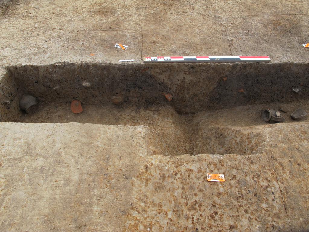 Le fossé nord du troisième enclos en cours de fouille.