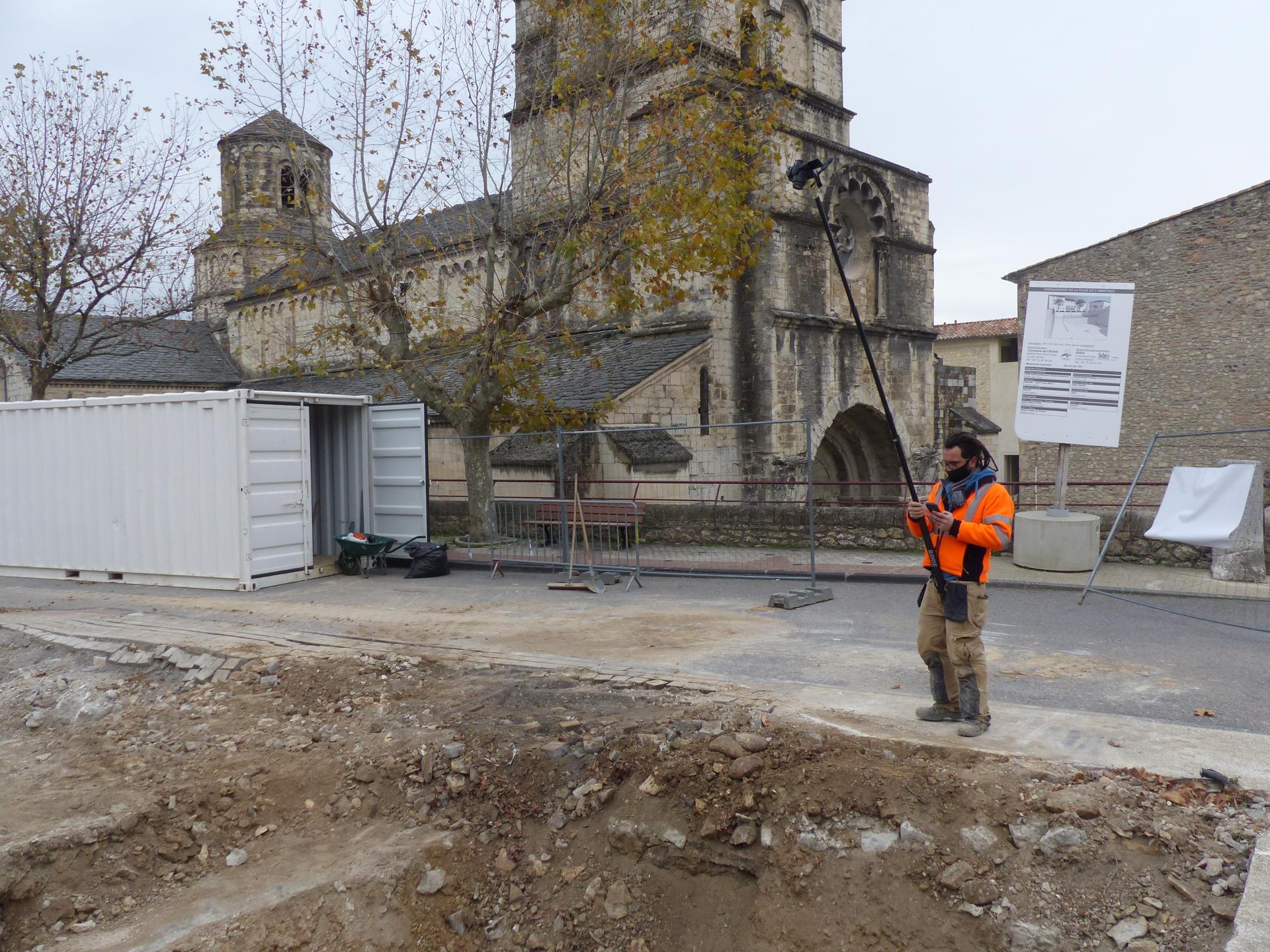 À Cruas, dans la vallée du Rhône, en limite orientale du département de l'Ardèche, l’aménagement d’un espace public ouvert en lieu et place d’un îlot d’habitation a donné lieu en novembre 2020 à une fouille mixte couplant étude de bâti et contextualisation sédimentaire. Elle fait suite à la découverte lors d’un diagnostic, à quelques encablures de l'abbatiale romane Sainte-Marie, d’énigmatiques maçonneries dans les caves des maisons vouées à la destruction.