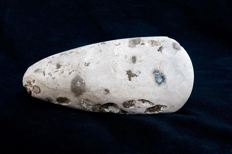 Hache polie en silex de la période néolithique. Elle a été découverte dans un trou de poteau d'un bâtiment