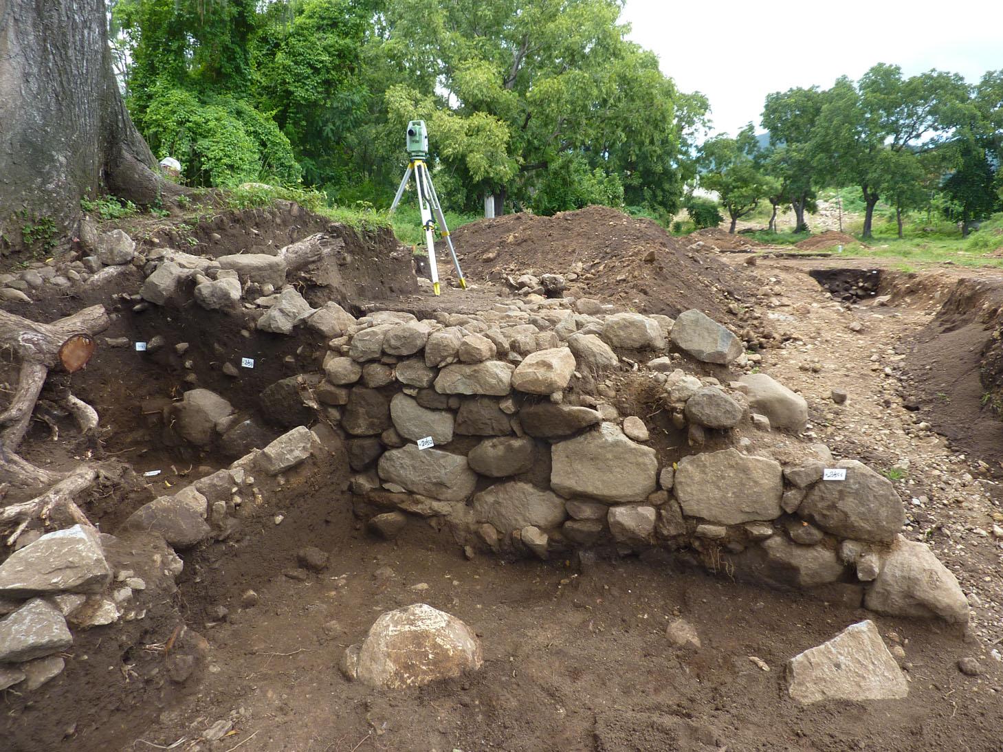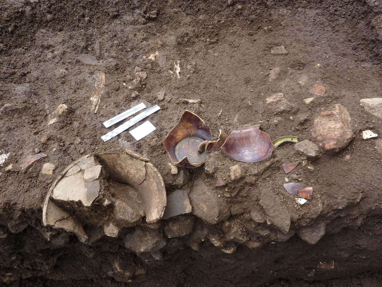 Ce sont de grandes fosses, riches en poteries, contenant parfois des individus inhumés, des trous de poteau et un mobilier archéologique varié dispersé sur le site.