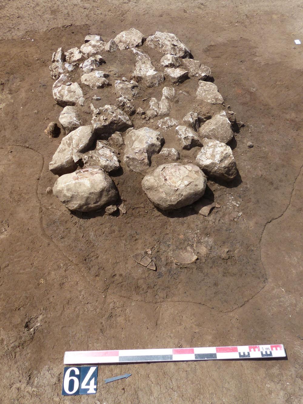 L'intérêt principal de cette fouille réside dans l'étude d'une nécropole du premier âge du Fer datée du VIIe siècle avant notre ère. L'ensemble présente un état de conservation remarquable : même le sol de circulation de l'époque a été préservé de l'action destructrice des labours et de l'érosion naturelle. Le mobilier (céramique, métallique...) mis au jour montre que l'espace funéraire est utilisée à la fin du VIIe siècle avant notre ère. On y distingue deux sortes de tombes ainsi que des vestiges remarquables, qui renvoient directement aux pratiques cultuelles réalisées en marge des funérailles (commémorations...).