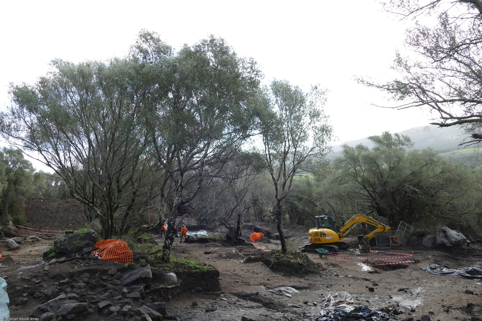 Vue générale de la fouille de Sotta (Corse-du-sud) en 2023.