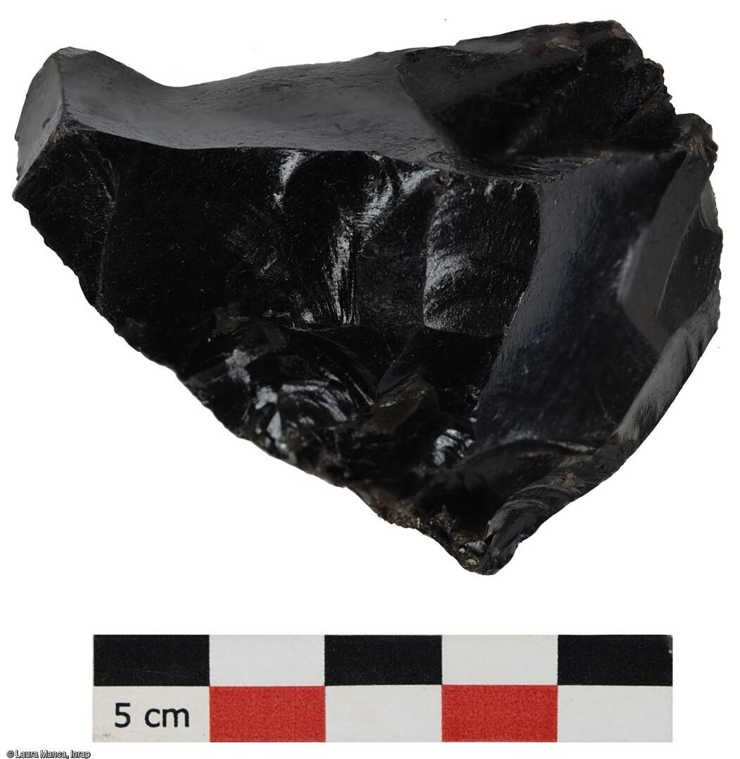 Nucléus en obsidienne découvert sur la fouille de Sotta (Corse-du-sud)en 2023.
