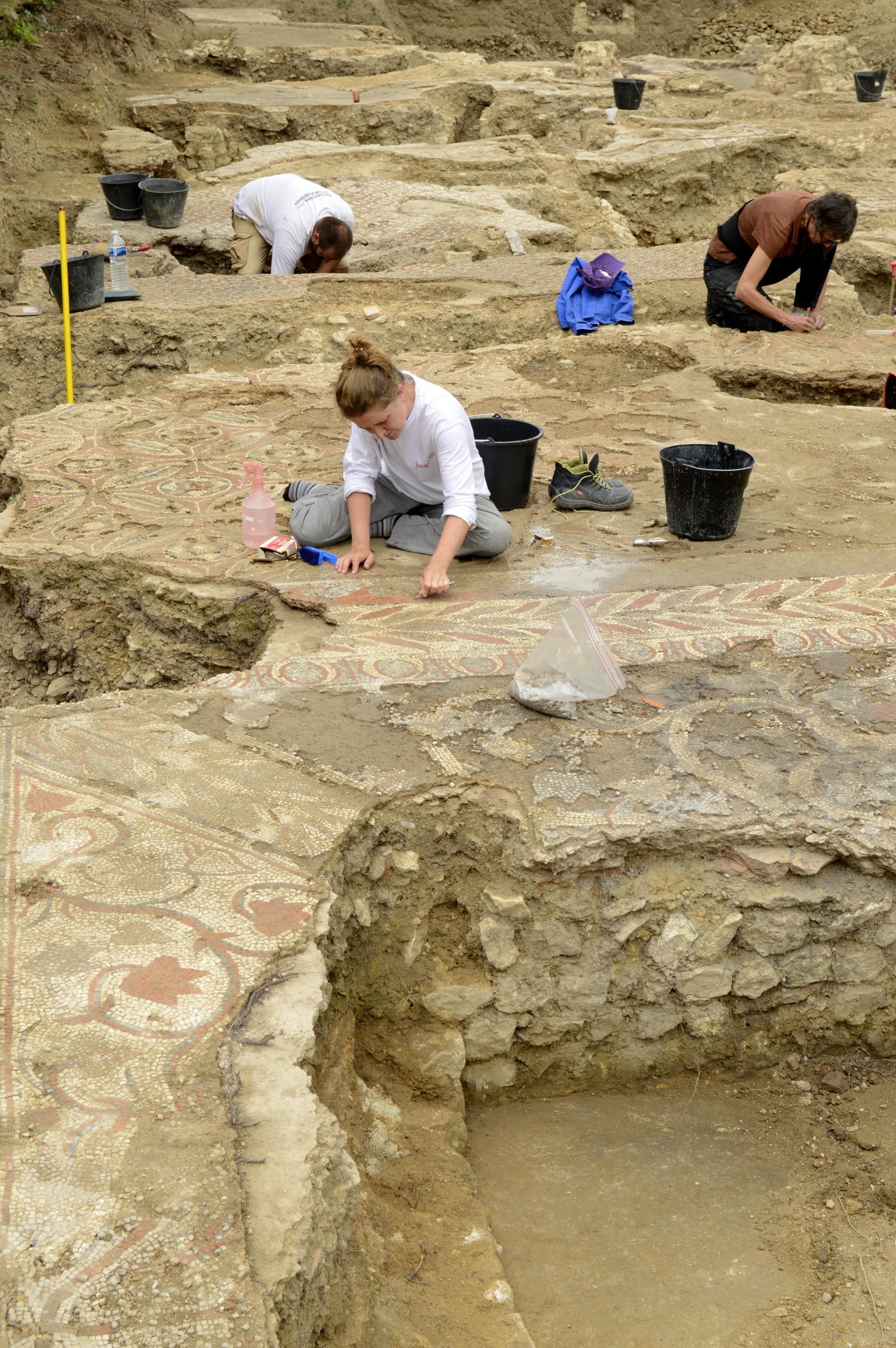 Pour l’heure, les mosaïques enlevées, la fouille se poursuit afin de découvrir l’Auch des Ier et IIe siècle de notre ère…