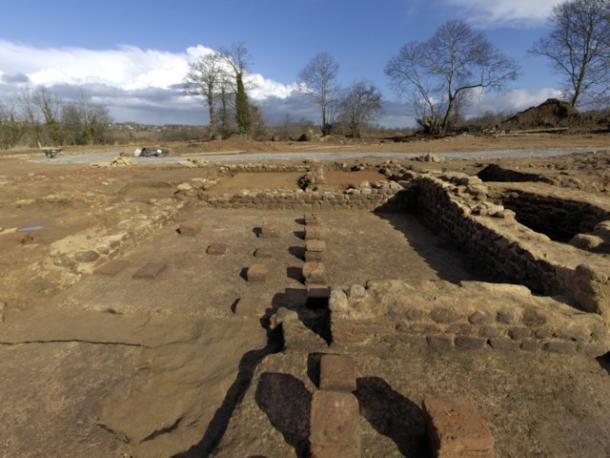 Situés dans l'aile sud de cette luxueuse villa, les thermes (200 m2) se composent d’un vestibule et d’une piscine froide (frigidarium), d’une pièce chauffée par le sol et équipée de baignoires d'eau tiède (tepidarium), d’une salle sur hypocauste dans laquelle l'eau est encore plus chaude (caldarium) : le confort « à la romaine ».