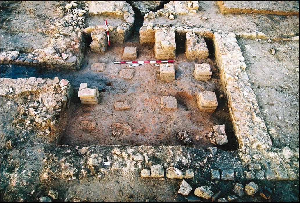 Dans la partie occidentale du périmètre de fouille, un bâtiment en T se dessine. Dans la partie sud du bâtiment, la présence de trois systèmes de chauffe alimentés par trois praefurnia indique la vocation résidentielle et/ou artisanale du lieu (chauffage par le sol ou structures de séchage-fumage). Les espaces extérieurs aux bâtiments précédemment cités recèlent de nombreux aménagements : cours, puits, bâtiments en matériaux légers, fossés et fosses. La présence de pépins de raisin dans le fond d'un des puits, comblé dans le dernier quart du Ier s. de notre ère, semble indiquer que la viticulture était au Ier s. la principale source de revenu de la villa. Les études des restes fauniques retrouvées en fouille vont dans le même sens. L'activité de l'établissement agricole se diversifie au cours des phases d'occupation suivantes par l'adoption de pratiques céréalières.